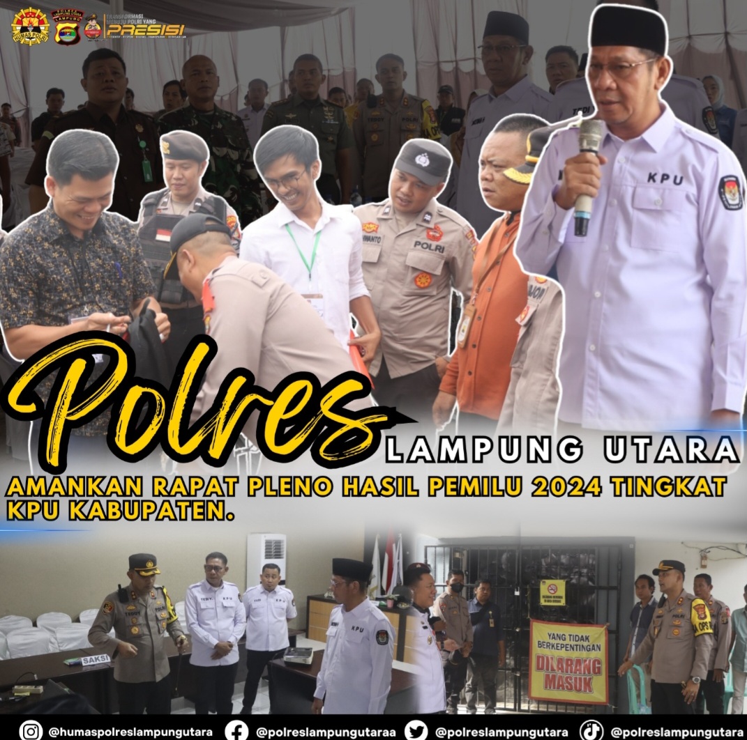 Kapolres AKBP Teddy juga mengimbau kepada seluruh warga masyarakat Kabupaten Lampung Utara dan seluruh simpatisan pasangan calon Presiden dan Wakil Presiden, simpatisan para caleg agar mari sama-sama menjaga situasi Kamtibmas saat pelaksanaan pleno tingkat KPU Kabupaten Lampung Utara.