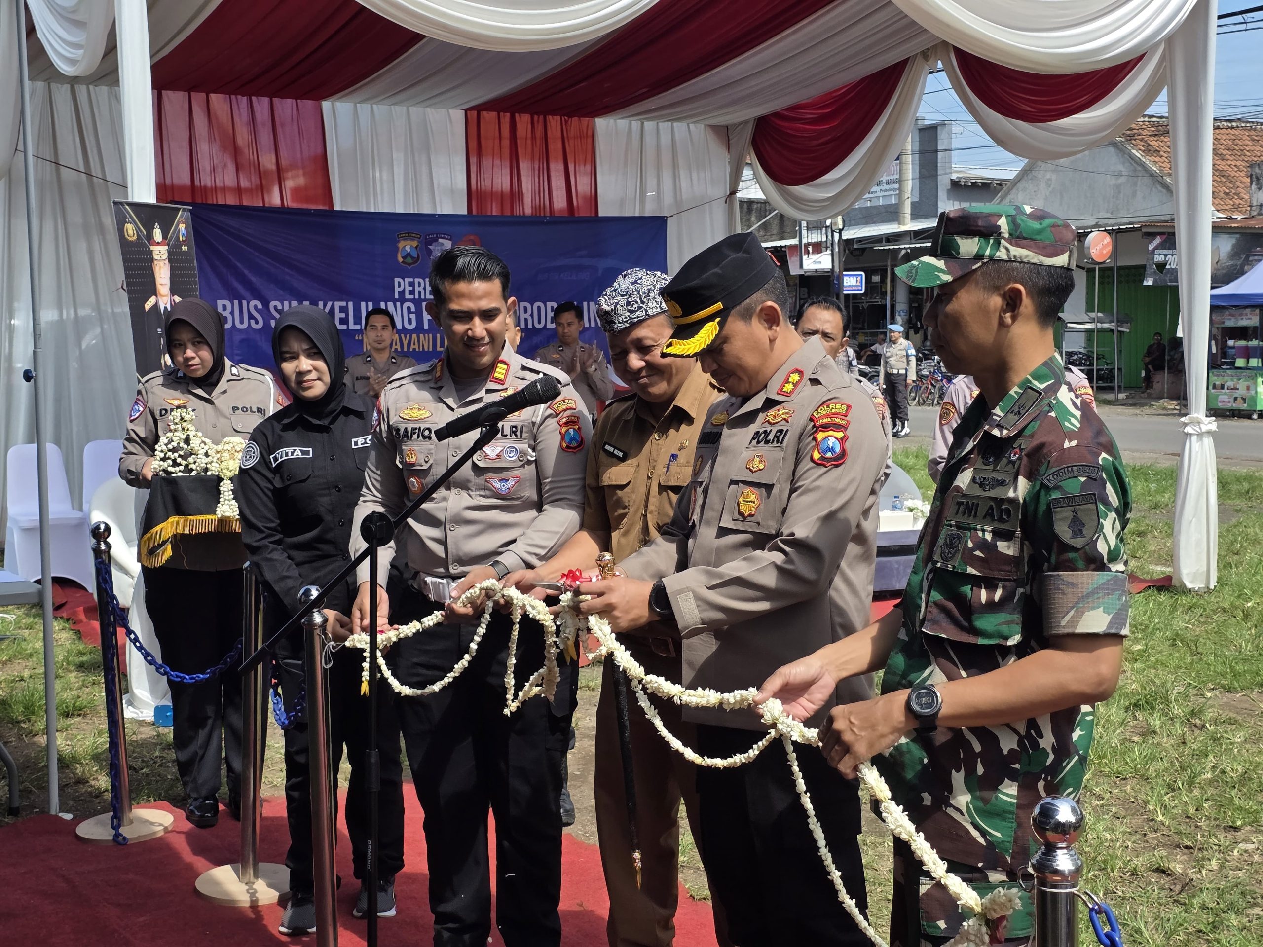 Pelaunchingan layanan bus perpanjangan SIM keliling ini ditandai dengan pemotongan pita oleh Kapolres Probolinggo AKBP Wisnu Wardana.
