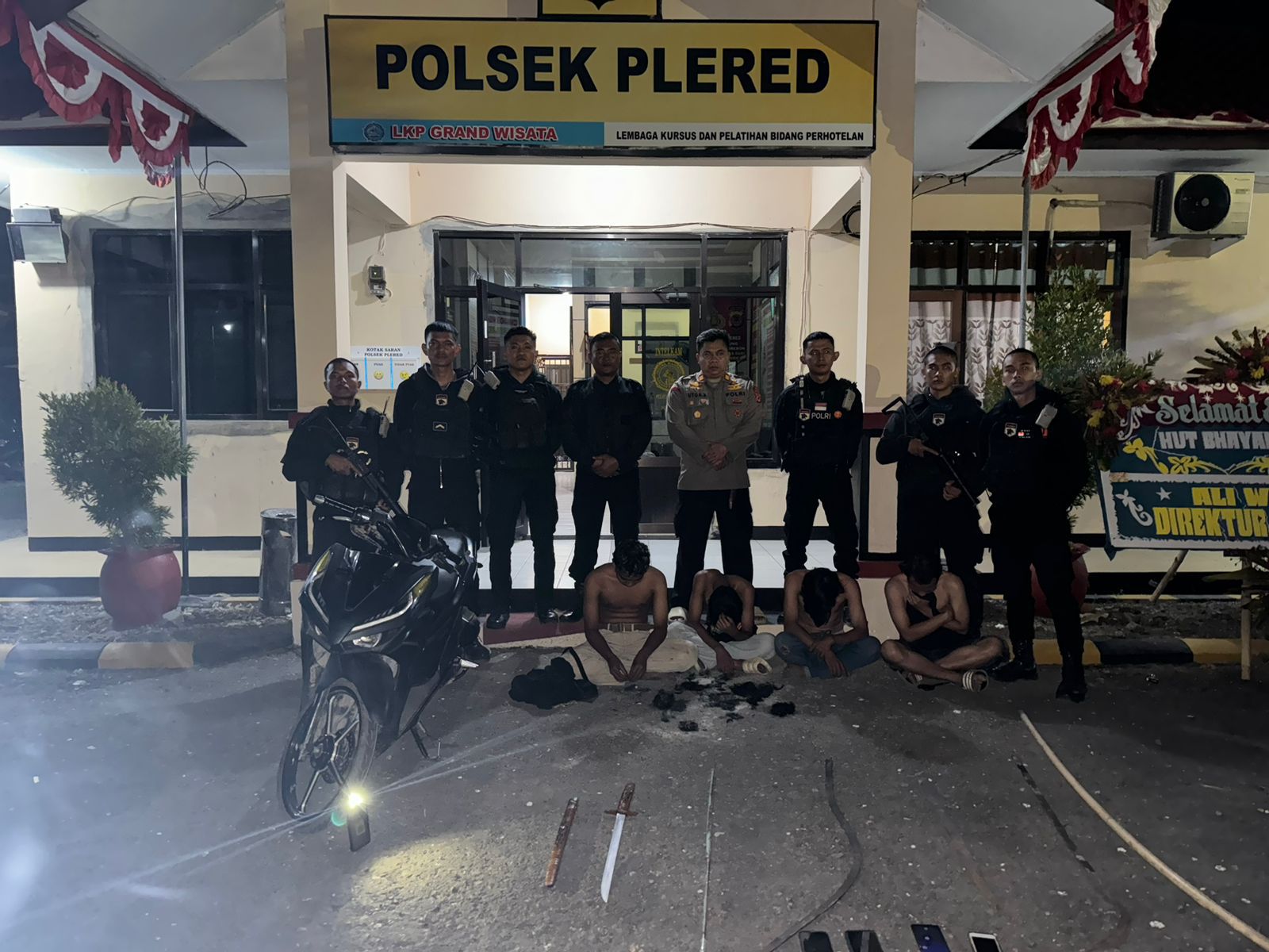 “Di Kecamatan Plered, kami mengamankan barang bukti empat bilah senjata tajam, stik golf, empat handphone, kayu rotan, dan sepeda motor, serta dua bilah celurit di Kecamatan Talun. Sehingga para pelaku berikut seluruh barang bukti langsung diamankan untuk menjalani pemeriksaan lebih lanjut di Mapolresta Cirebon,” kata Kombes Pol Sumarni, S.I.K, S.H, M.H.