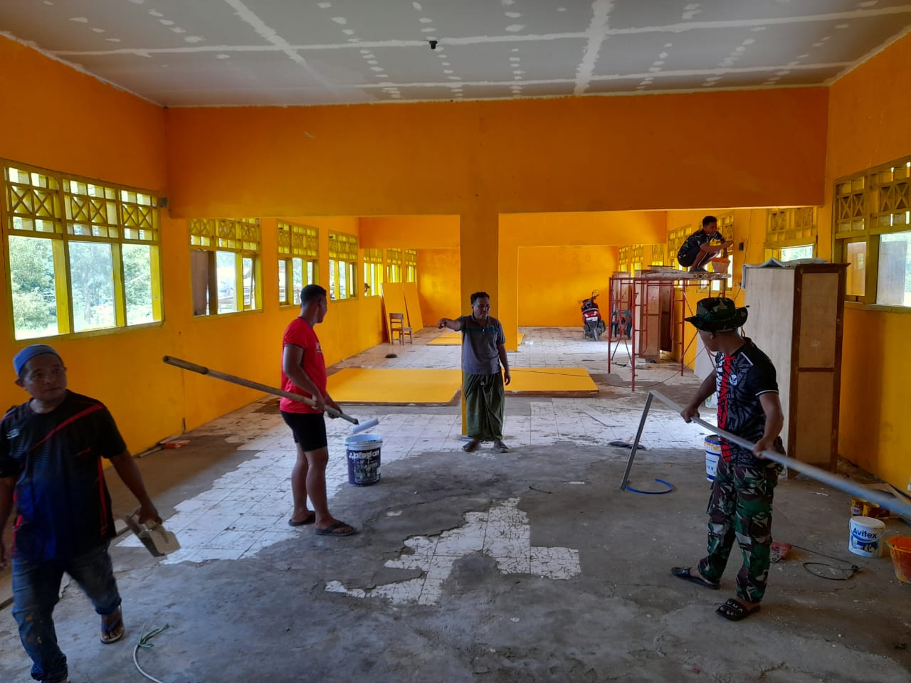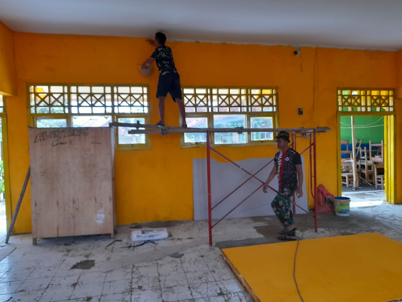 Sasaran fisik TMMD 123 Kodim 0829/Bangkalan yaitu rehabilitasi SDN 3 Katol Timur, kini memasuki tahap pengecatan bagian dalam ruangan dan ada bagian plafon yang baru saja dilakukan penggantian. Personel Satgas TMMD bergotong royong bersama masyarakat dalam pelaksanaan pengecatan tersebut. Minggu (9/3/25).