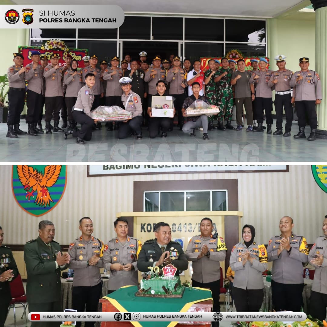 Sinergitas antara TNI dan Polri kembali terlihat dalam rangkaian peringatan hari ulang tahun TNI ke-79 yang jatuh pada 5 Oktober 2024. Kapolres Bangka Tengah Polda Kepulauan Bangka Belitung AKBP Pradana Aditya Nugraha, S.H., S.I.K menyambangi markas Kodim 0413/BANGKA untuk memberikan ucapan selamat secara langsung kepada Dandim dan seluruh personel TNI.