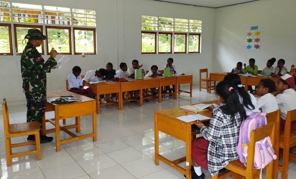 “Dengan bekal kemampuan mengajar yang telah dimiliki, personel Pos Kelila Satgas Yonif 200/BN memberikan materi pelajaran matematika untuk siswa di kelas. Semoga dengan kegiatan mengajar ini anak-anak SDN Kelila tidak tertinggal pendidikannya dengan siswa SD yang lain,” tambahnya.
