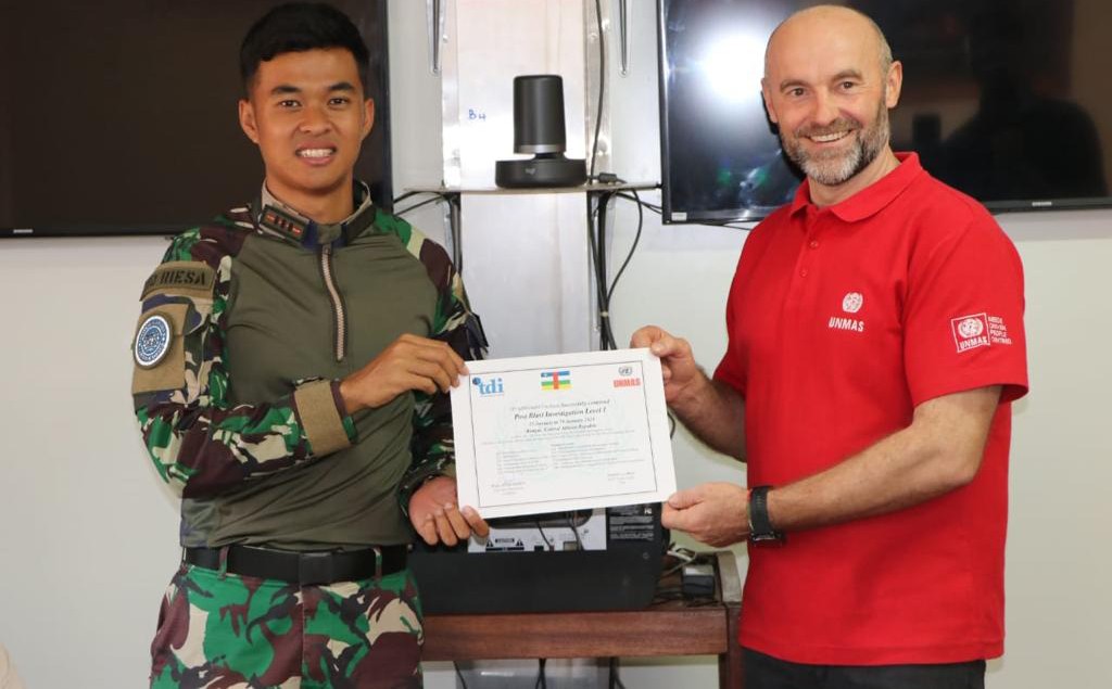 Tim EOD Satgas Kizi TNI Konga XXXVII-J di bawah pimpinan Dantim Letda Czi Tito Riesa berhasil mendapatkan Sertifikasi EOD UNMASS setelah mengikuti pelatihan PBI (Post Blast Investigation) di Bangui