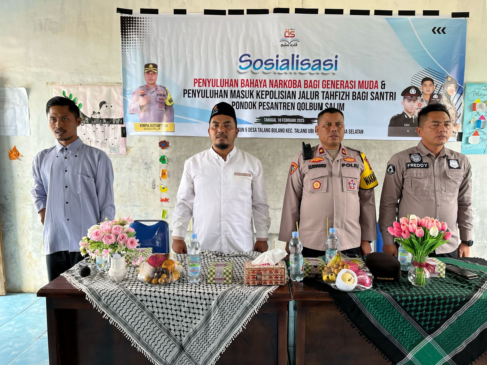 “Kami berharap, melalui kegiatan ini, para santri tidak hanya memahami bahaya narkoba tetapi juga menjadi agen perubahan dalam mencegah peredaran narkotika di lingkungan mereka,” ujar Iptu Fredy.