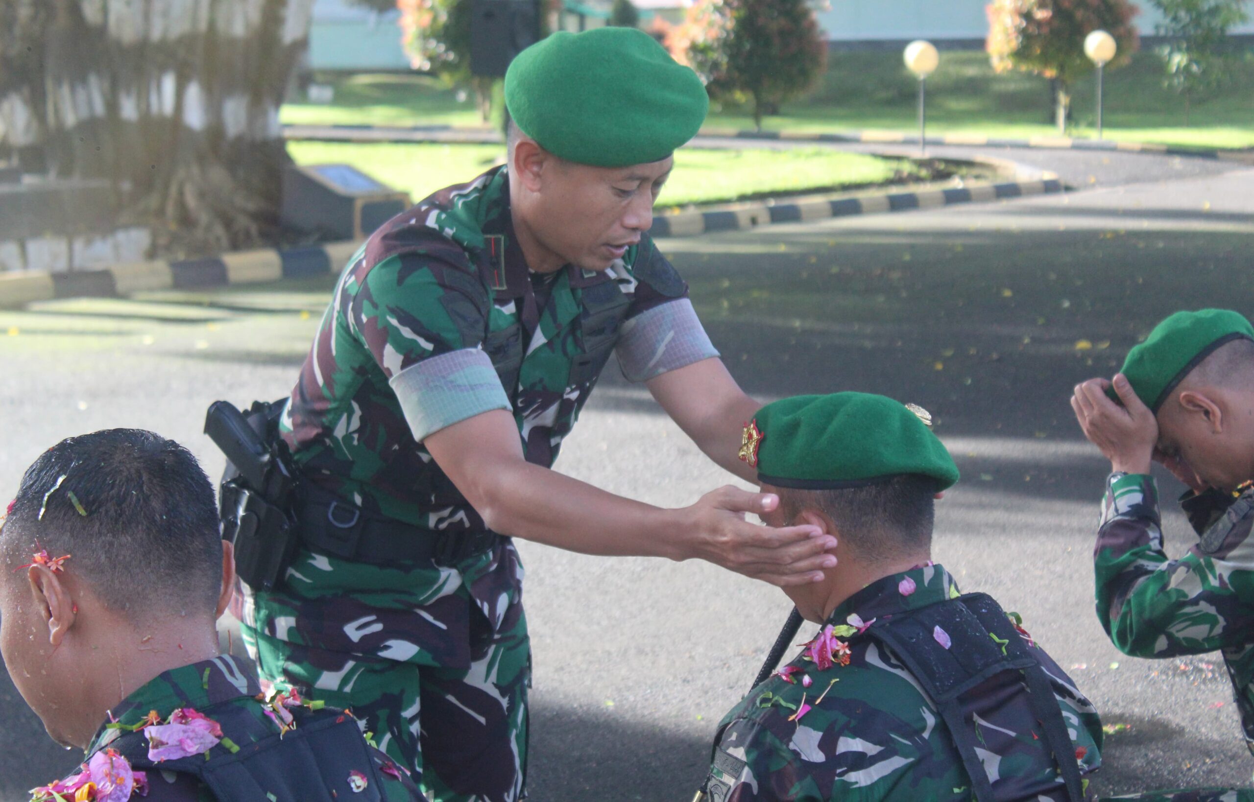 Dalam rangka Tumbuhkan cinta terhadap satuan Yonif 144/JY Melaksanakan Tradisi Penerimaan Warga Baru yang berjumlah 8 Personel terdiri dari 5 Perwira, 1 Bintara dan 2 Tamtama.