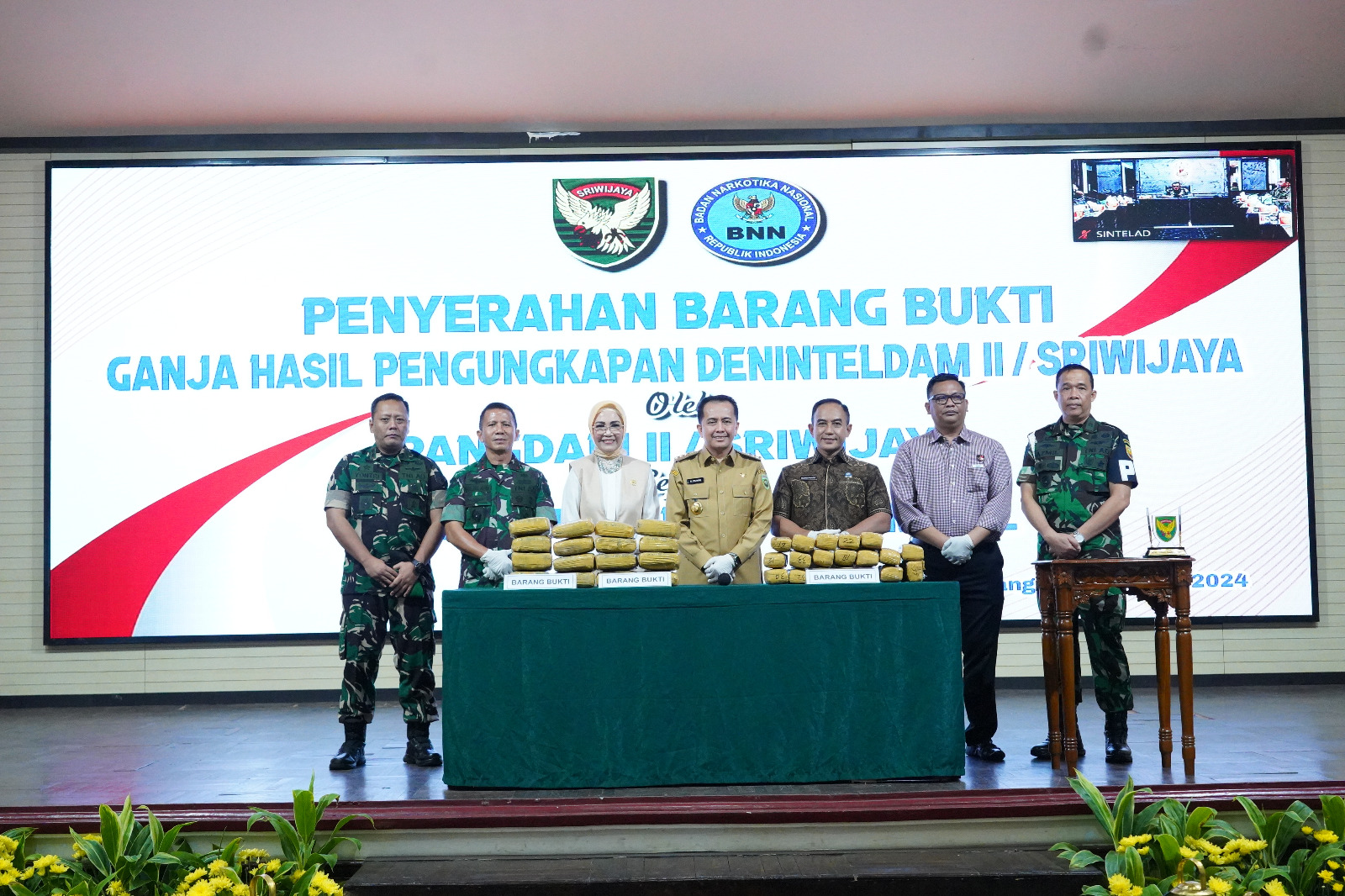 Atas upaya pengungkapan peredaran Narkoba 35 paket ganja kering, Pangdam II/Swj Mayjen TNI Yanuar Adil dan jajarannya mendapatkan apresiasi dari Pj. Gubernur Sumsel Agus Fatoni dan Kepala BNN Prov. Sumsel, Brigjen Pol Djoko Prihadi, S.H., M.H.