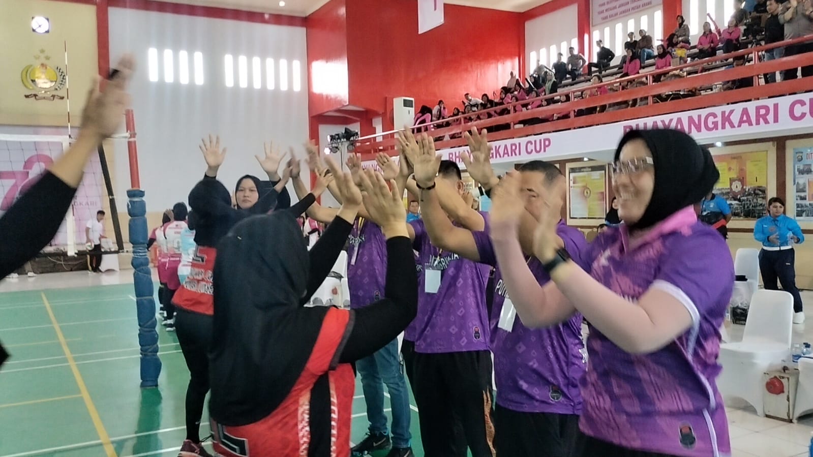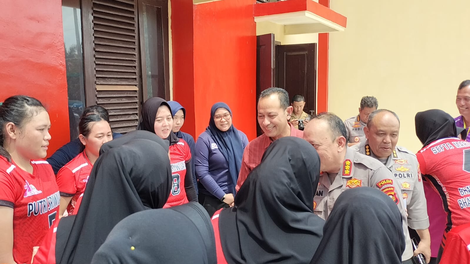 Wakapolda Sumsel menyaksikan langsung pertandingan Bola Voli Bhayangkari Cup antara tim Bhayangkari Sumsel Putri Sriwijaya melawan tim Bhayangkari Babel.