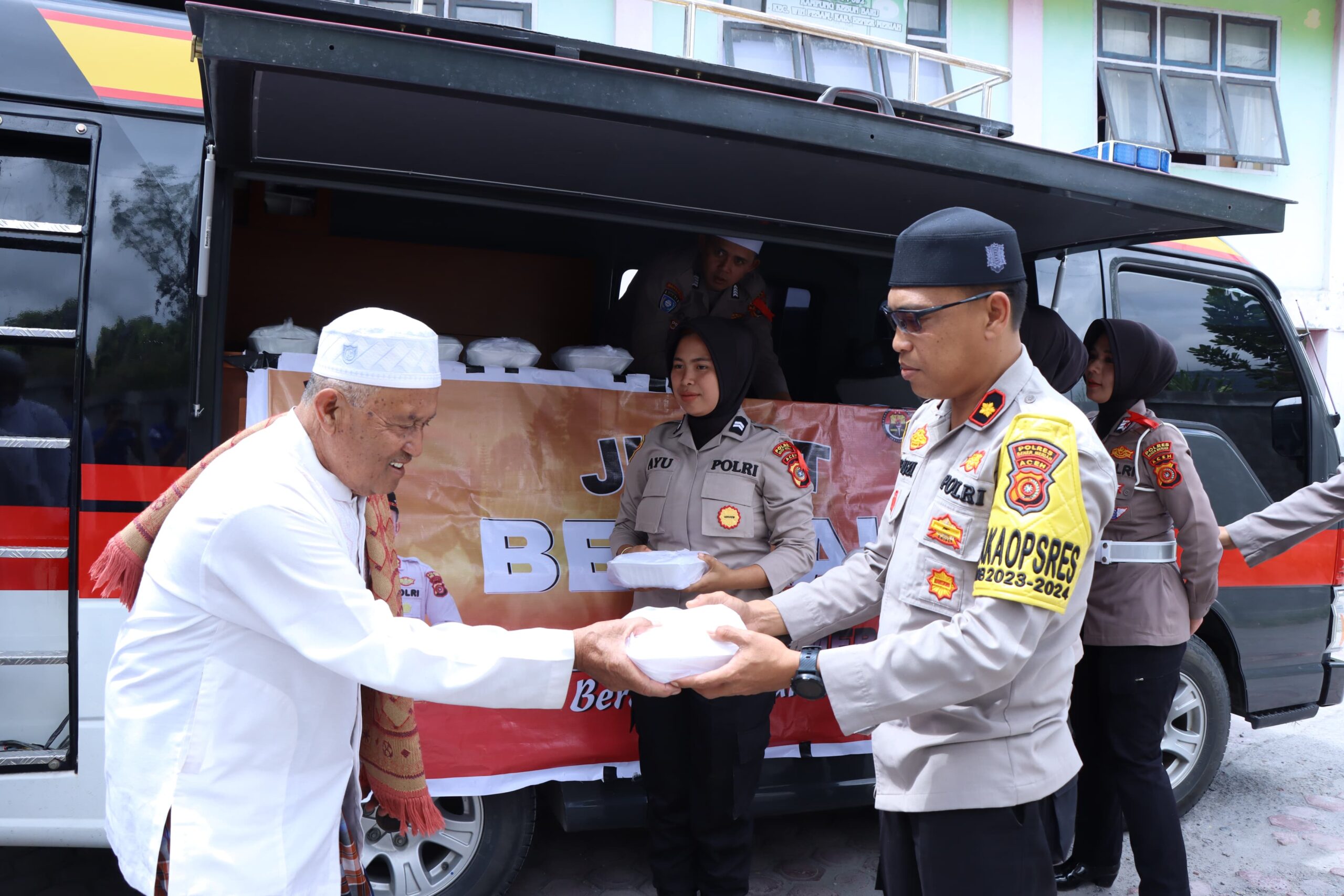 KOMPAS86.COM | Bener Meriah, Redelong – Wakapolres Bener Meriah Kompol Fauzi membagikan 100 kotak nasi kotak kepada jamaah solat Jumat di Masjid Nurul Abrar Kampung Kebun Baru, Kecamatan Wih Pesam , Kabupaten Bener Meriah, Jumat 2 Februari 2024.