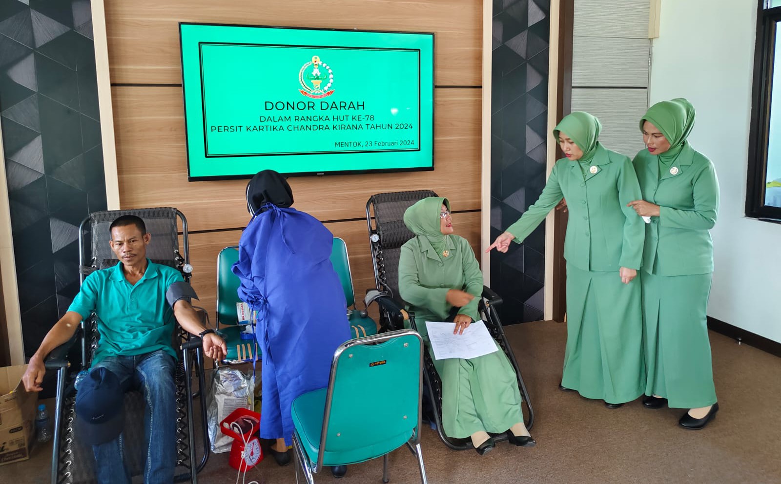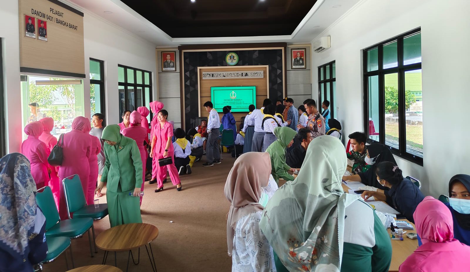 Wujud kepedulian dan rasa solidaritas keluarga besar Kodim 0431/Bangka Barat mengadakan kegiatan Donor Darah dalam Rangka HUT Persit Kartika Candra Kirana ke 78 Tahun 2024 bertempat di Ruang Loby Makodim 0431/Bangka Barat.