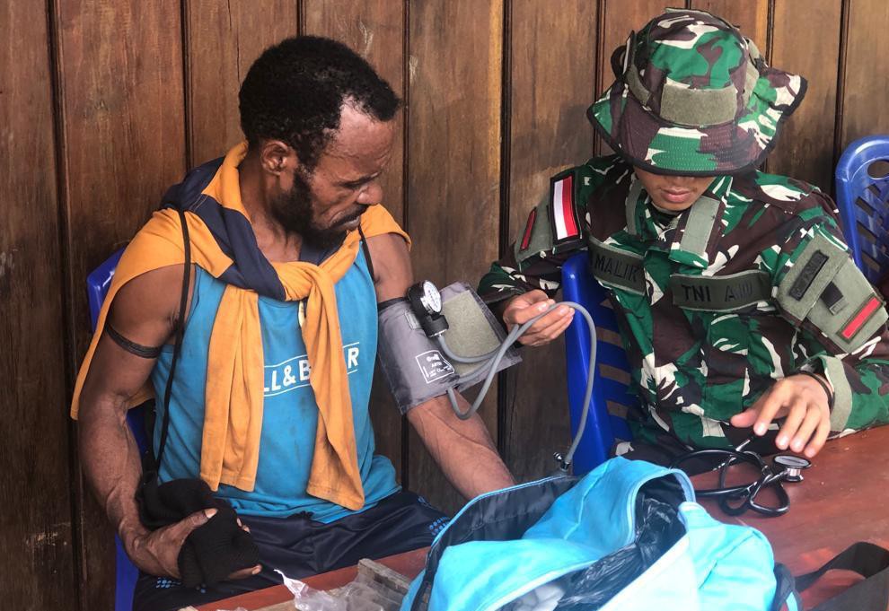 Satgas Yonif 200/BN melalui Pos Benawa memberikan pelayanan kesehatan keliling kepada masyarakat Kampung Ampera Distrik Benawa Kabupaten Yalimo, Papua Pegunungan.