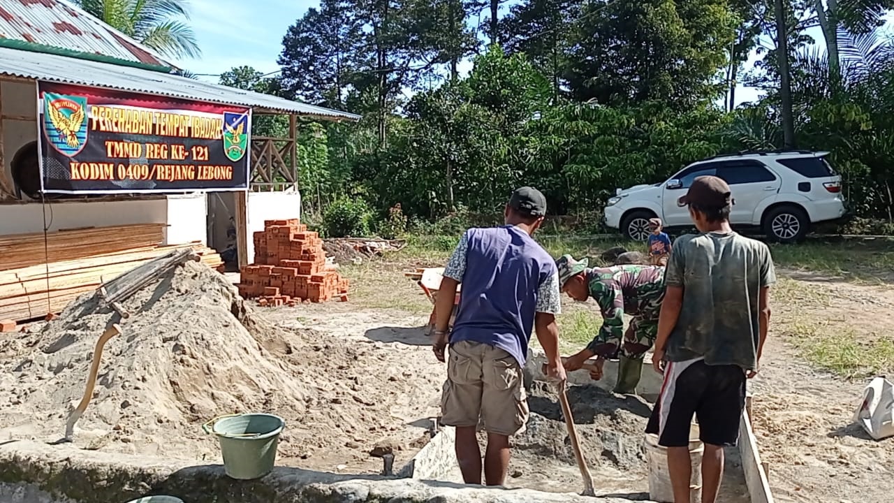Satgas TMMD Reguler ke-121 Kodim 0409/RL merenovasi Mushola bersama warga di Dusun 1 Gelegau Desa Belumai 2 Kec. Padang Ulak Tanding Kab. Rejang Lebong. Sabtu (27/07/2024)