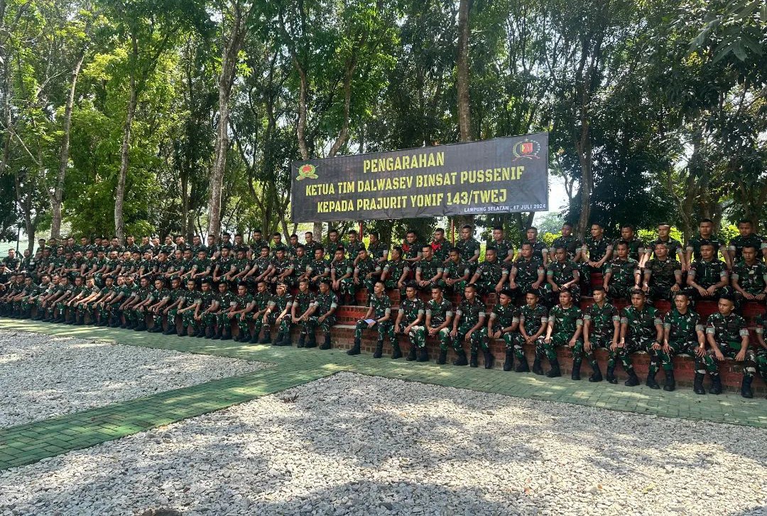 Batalyon Infanteri Yonif 143/TWEJ menerima Kunjungan Dari Tim Penggendalian, Pengawasan dan Evaluasi (Dalwasev) Binsat Pusenif Di Mako Yonif 143/TWEJ. Lampung Selatan. Minggu (21/07/2024)