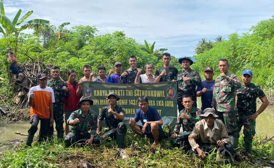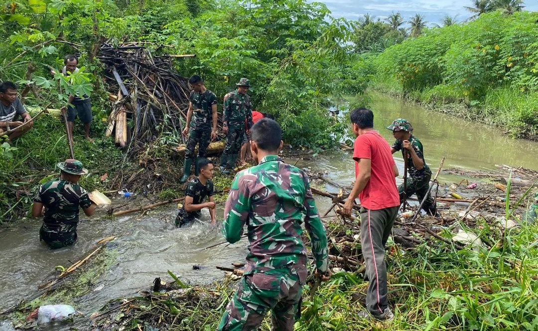 Banyaknya sampah yang menumpuk menghalangi arus sungai pasca banjir, membuat Yonif 143/TWEJ tergerak untuk membersihkannya, sehingga aliran sungai menjadi lancar.