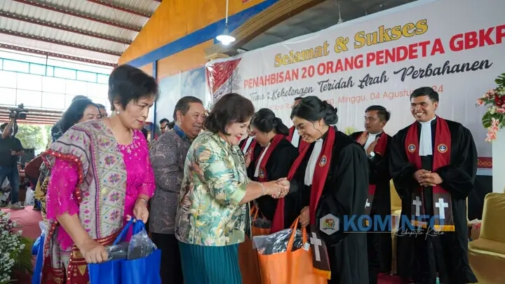 Bupati Karo, Cory Sriwaty vSebayang hadiri Penahbisan Calon Pendeta Gereja Batak Karo Protestan (GBKP) Tahun 2024 bertempat di jambur Rudang Mayang Jl. Letjen Jamin Ginting Kabanjahe pada hari Minggu,yy (4/8/2024).