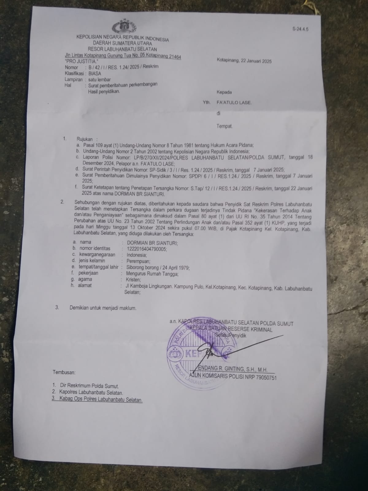 Anggota kepolisian Polres Labuhanbatu Selatan Provinsi sumatera Utara,lambat Penanganan pengaduan masyarakat tentang pemukulan Anak di bawah umur, yang terjadi di pajak Kota Pinang Labuhan batu Selatan, 22/02/2025.