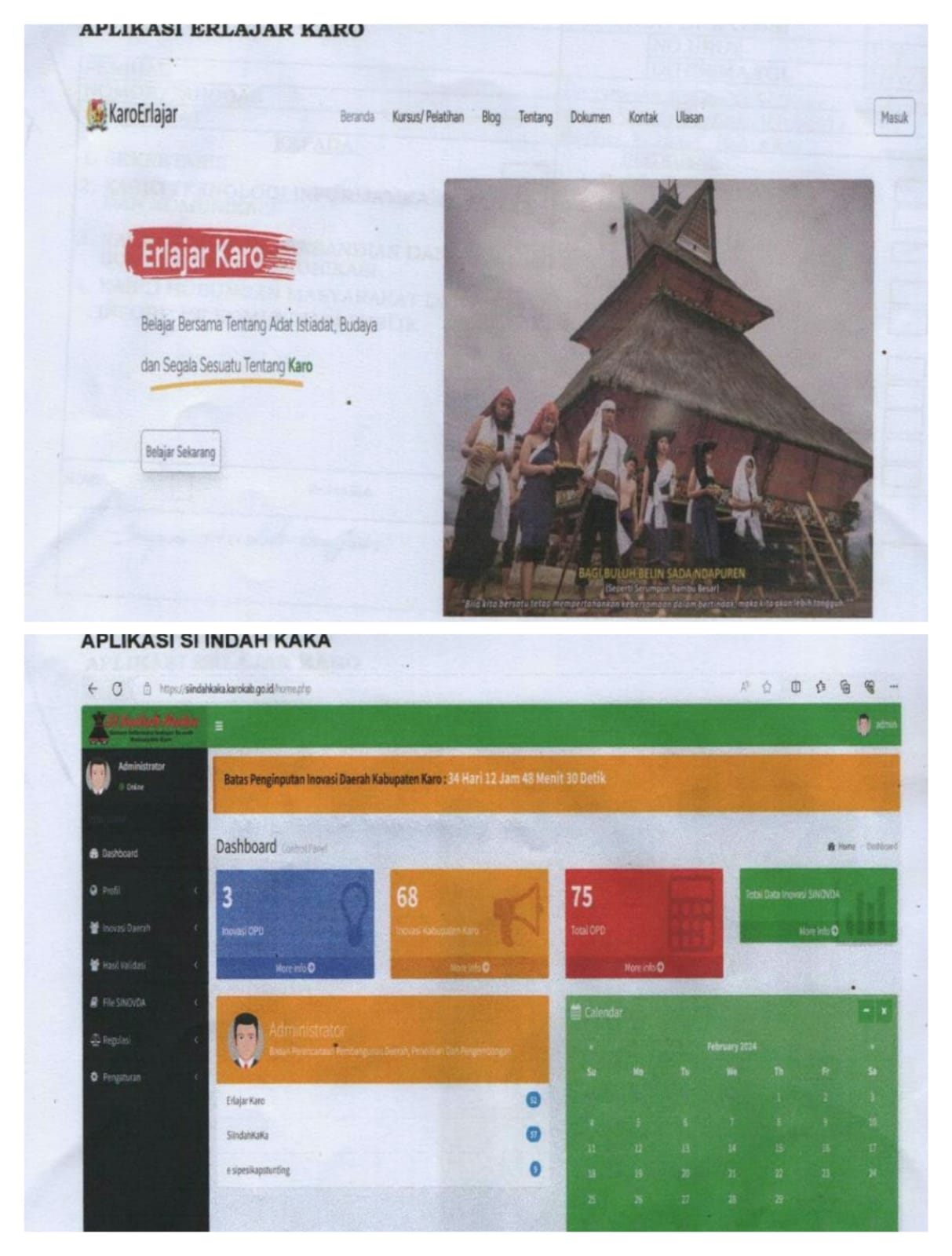 Aplikasi Sistem Informasi Inovasi Daerah (Sinovda), yang digagas oleh Provinsi Sumatera Utara, yang telah direplikasi oleh Pemerintah Kabupaten Karo. Kini, menjadi Aplikasi Sistem Inovasi Daerah Kabupaten Karo (SIINDAH KAKA), Rabu (03/04).