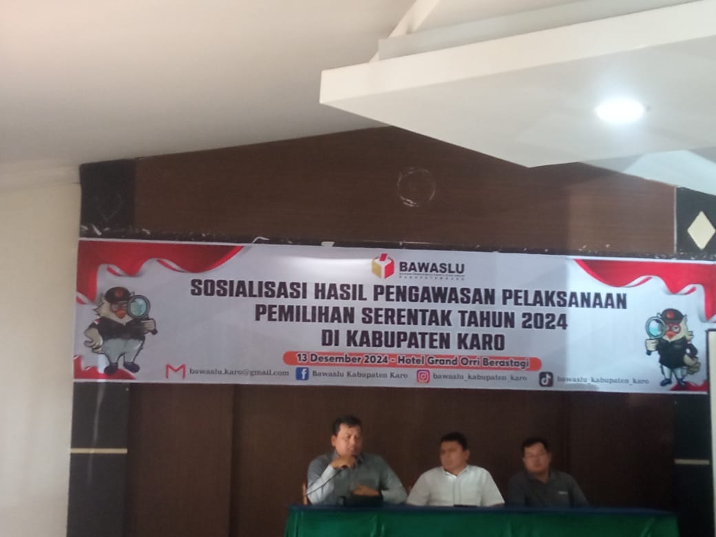 Badan Pengawas Pemilu (Bawaslu) Kabupaten Karo, gelar sosialisasi hasil pengawasan pelaksanaan pemilihan serentak Tahun 2024 bersama insan Pers Tanah Karo, yang bertempat di Hotel Grand Orri, Kota Berastagi, pada Jumat (13/12/2024).
