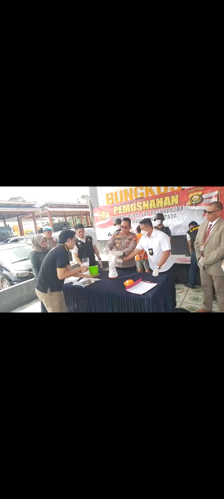 Wakapolres Musi Rawas Utara,Kompol M.Yunus,SH saat diwawancarai awak media sesuai pemusnahan barang bukti menyampaikan ucapan terimakasih kepada para awak media yang hadir untuk meliput kegiatan pemusnahan barang bukti narkoba tersebut,dirinya menuturkan satuan Reserse Narkoba polres Muratara telah berhasil mengamankan satu orang terduga pelaku pengedar narkoba diwilayah hukum polres Muratara beserta barang bukti bungkusan plastik bening yang dibalut lakban seberat brutto,1020 ( seribu dua puluh)gram,satu buah handphone Vivo warna hitam dan satu buah motor Honda beat,namun yang kita musnahkan pada hari ini sebanyak,992,05 gram saja sisanya 5 gram akan digunakan sebagai sampel penguji di laboratorium krimalistis,5 gram akan di pakai sebagai bukti di pengadilan,namun dari 992,05 gram barang bukti tersebut bisa menyelamatkan 10.000 nyawa warga bumi beselang serundingan,ujar Wakapolres.