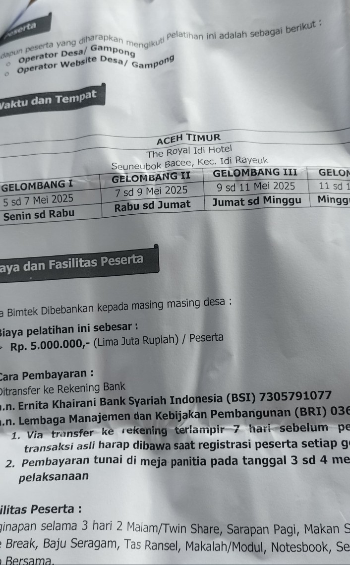 Aceh Timur – Kompas86.com__, 02 Mei 2024, Aktivis hak asasi manusia, Razali, menuding bahwa bimtek website desa yang diselenggarakan oleh lembaga dari Medan di Aceh Timur memiliki bau bisnis dana desa. Menurutnya, pelatihan tersebut hanya untuk kepentingan pribadi atau bisnis, bukan untuk kepentingan masyarakat desa.