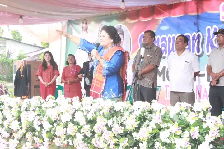 Bupati Karo, Cory Sriwaty Sebayang, hadiri Perayaan Kenangkihen Tuhan Yesus Kristus GBKP Klasis Sinabun di Desa Tiganderket Kecamatan Tiganderket, Kabupaten Karo,pada Sabtu, (11/05/2024).