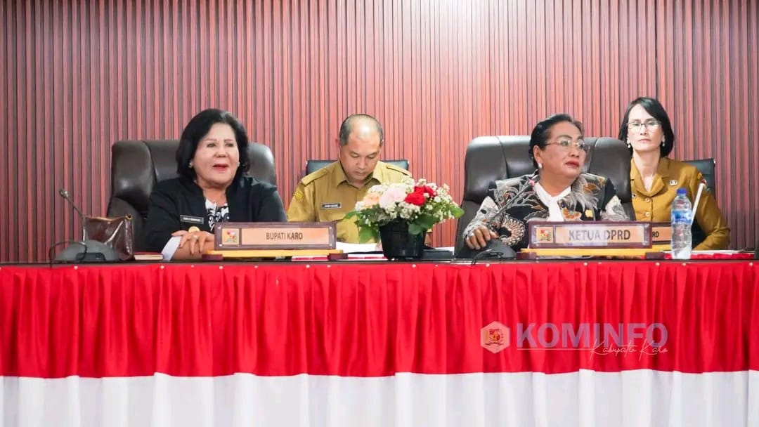 Paripurna yang dipimpin Ketua DPRD Kabupaten Karo, Iriani, turut dihadiri Calon Bupati dan Wakil Bupati Karo terpilih dalam pemilihan Bupati dan Wakil Bupati Karo Tahun 2024, Brigjen Pol (pur) Dr. Antonius Ginting, Sp.OG, M.Kes dan Komando Tarigan,SP.