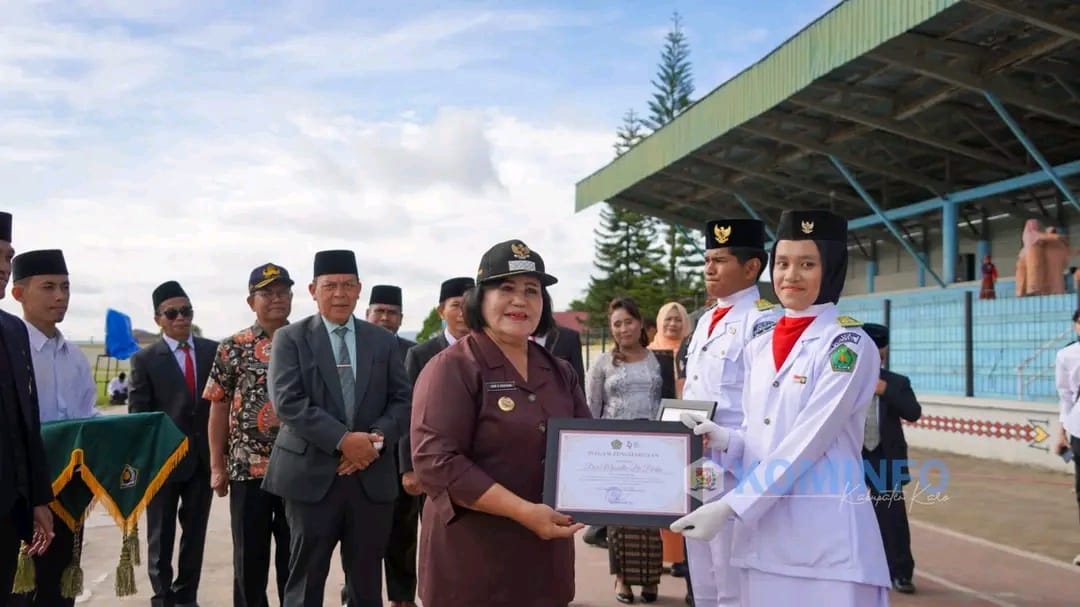 Bupati Karo, Cory Sriwaty Sebayang, pimpin upacara Hari Amal Bakti Ke-79 yang berlangsung di Lapangan Samura Kabanjahe, pada Jumat (03/01/2025).