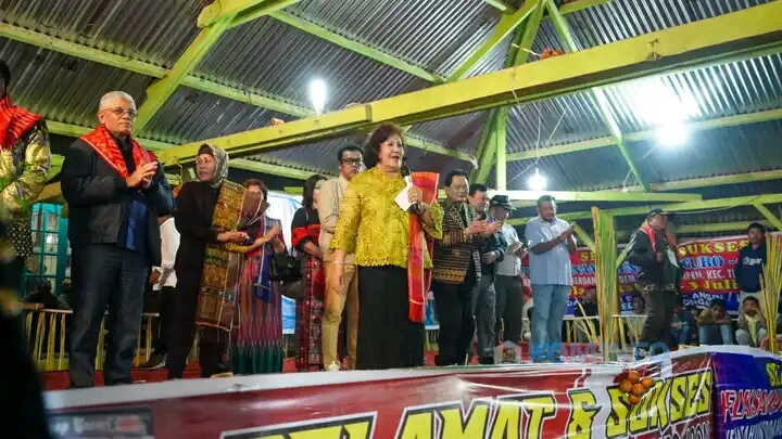 Bupati Karo, Cory Sriwaty Sebayang, dengan hangat menyambut dan menyapa seluruh masyarakat yang hadir dalam acara “Kerja Tahun” yang diselenggarakan di Desa Penampen dan Desa Nari Gunung, Kecamatan Tiganderket, Selasa (02/07/2024).