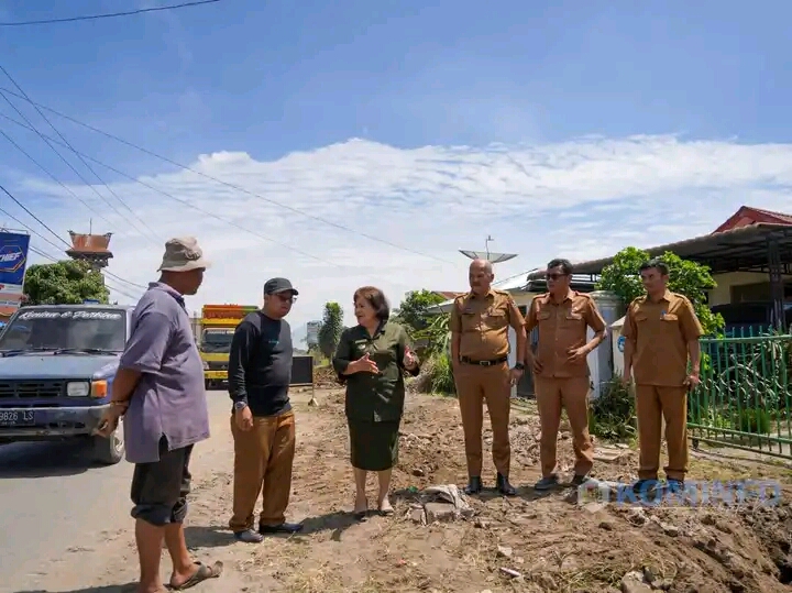 Bupati Karo, Cory Sriwaty Sebayang didampingi Kepala Bappedalitbang Karo, Ir.Nasib Sianturi dan Kadis PUTR Karo, Eduard Tarigan, S.T, melakukan tinjauan langsung terhadap proses pengerjaan pelebaran jalan Tigapanah ruas Kabanjahe-Merek, Selasa (25/06/2024).