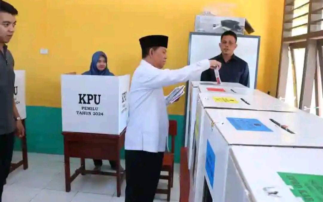 Bupati Lampung Utara Beserta Istri Menjalankan Hak Pilih Sebagai Warga Negara Indonesia (WNI) Pada Pemilu Tahun 2024