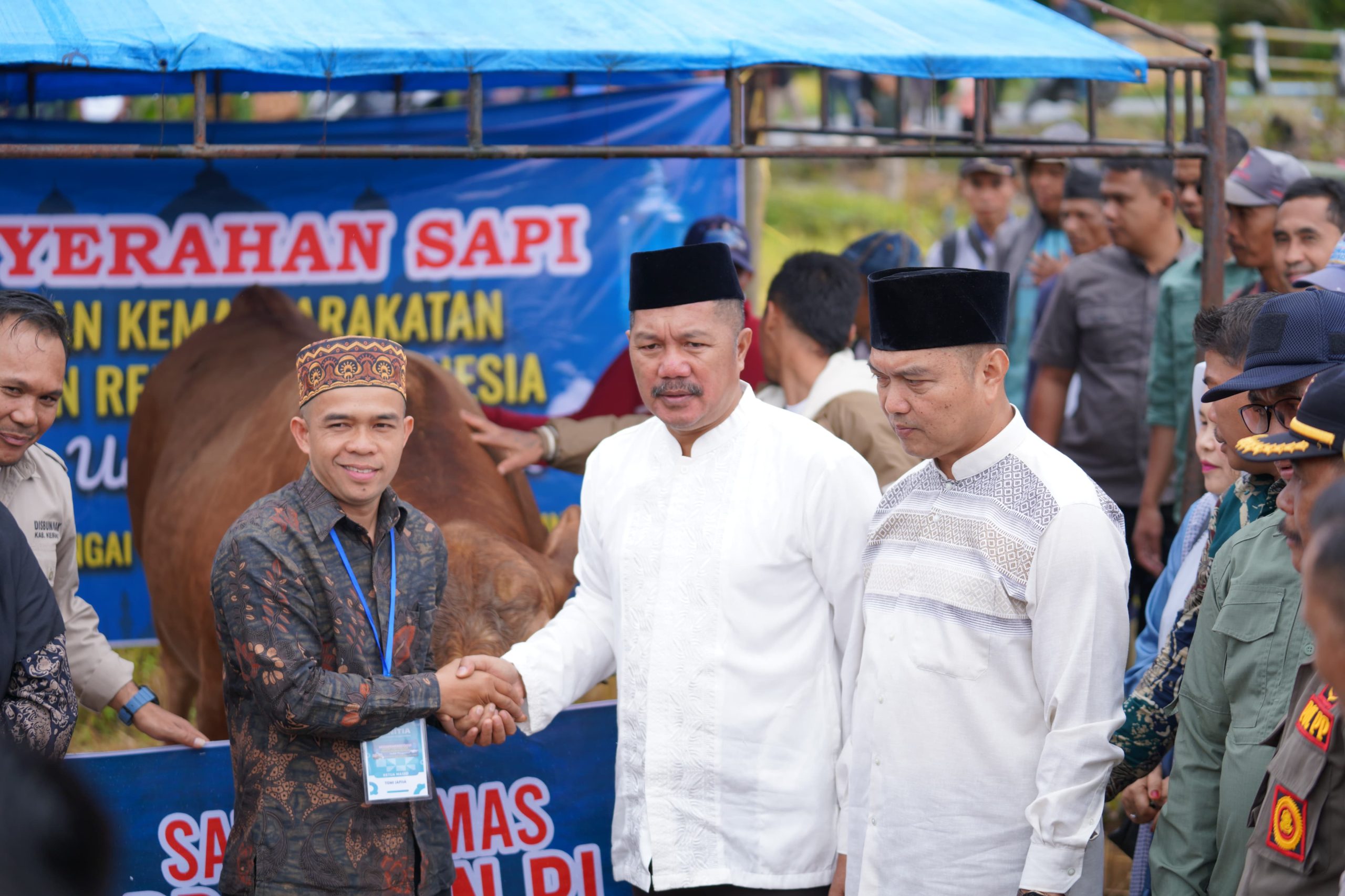 Penyerahan sapi kurban ini menjadi momen penuh makna sekaligus bentuk nyata sinergi antara pemerintah pusat dan daerah dalam memperkuat semangat kebersamaan di tengah masyarakat.(fa)