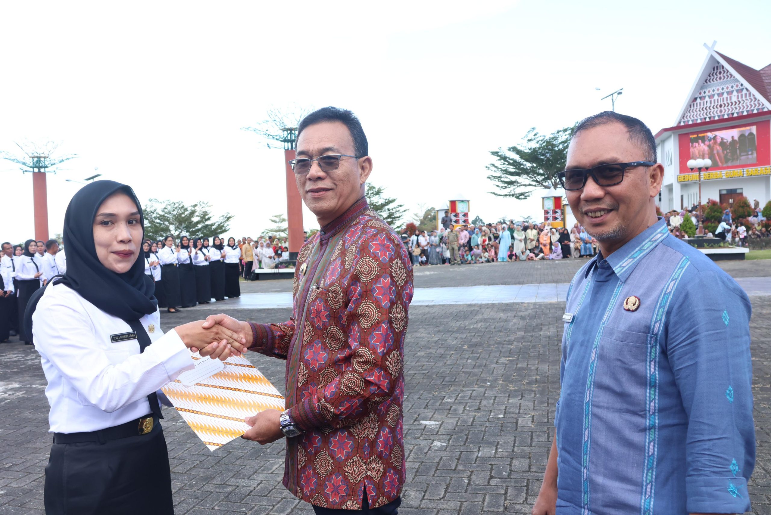 Bupati Tapanuli Selatan (Tapsel), H. Gus Irawan Pasaribu, secara resmi menyerahkan Surat Keputusan (SK) Pengangkatan Pegawai Pemerintah dengan Perjanjian Kerja (PPPK) Formasi Tahun 2024 Tahap I dan Surat Pernyataan Melaksanakan Tugas (SPMT) di Lapangan Parade Kantor Bupati Tapsel, Jalan Prof. Lafran Pane, Sipirok, Kamis (3/7/2025).