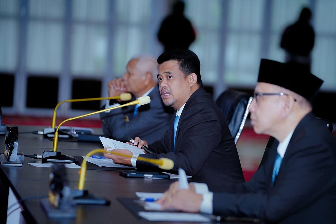 Bupati Tapanuli Utara Dr. Jonius Taripar Parsaoran Hutabarat, S.Si, M.Si (JTP) didampingi Inspektur Daerah, Kadis Pertanian, Kadis Ketahanan Pangan, Kadis Koperasi, UKM, Perindustrian dan Perdagangan serta Kepala Bagian Perekonomian dan SDA Setdakab menghadiri High Level Meeting (HLM) Tim Pengendalian Inflasi Daerah (TPID) Provinsi Sumatera Utara dalam rangka ketersediaan pasokan dan stabilitas harga komoditas pangan pada Bulan Suci Ramadhan dan Idul Fitri 1446H yang dipimpin Gubernur Sumatera Utara Bapak Bobby Nasution bertempat di Aula Raja Inal Siregar Kantor Gubernur Sumatera Utara, Jumat (14/03/2025).