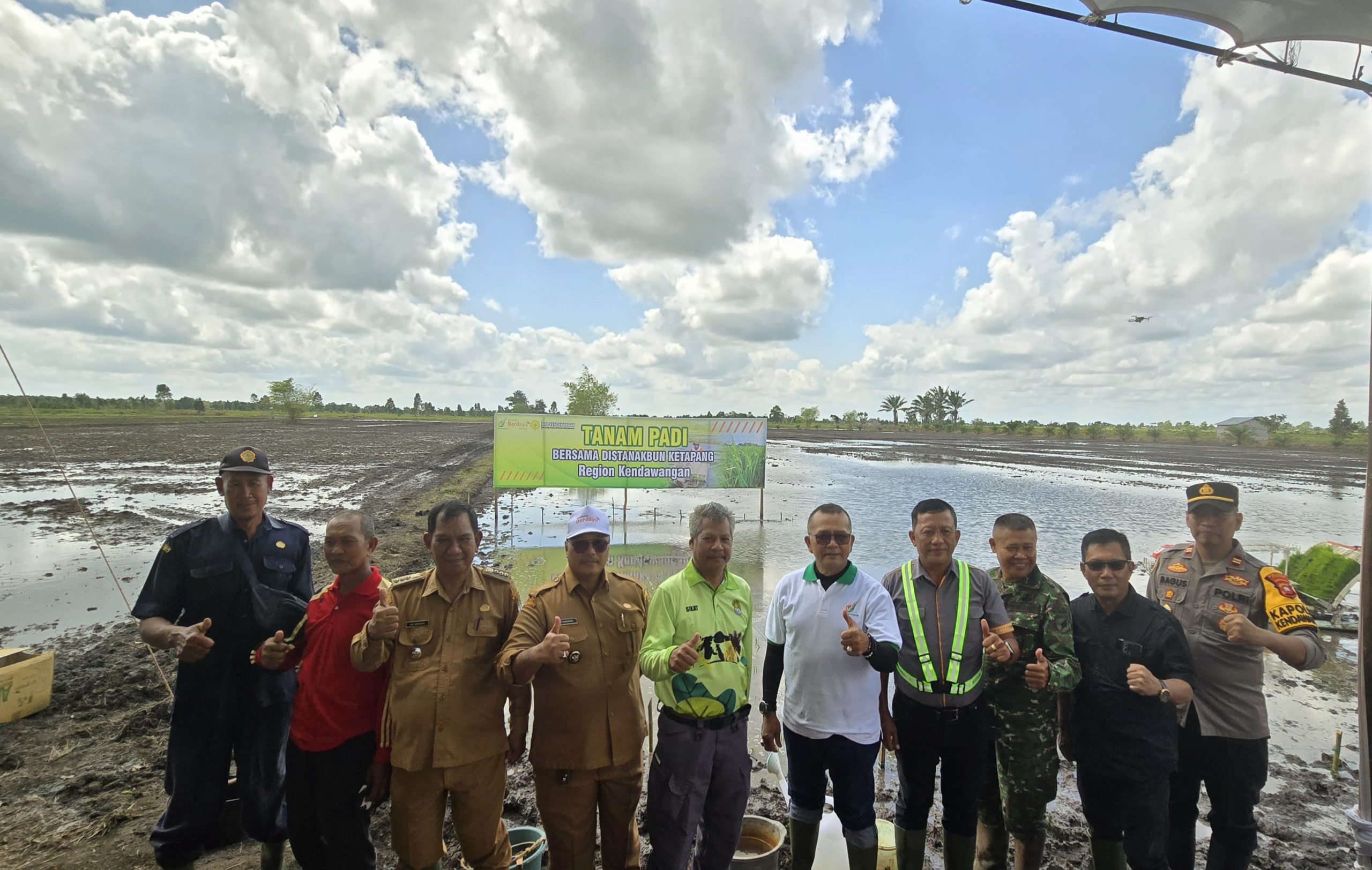 Dalam kegiatan menanam padi bersama Distanakbun Ketapang dilakukan di Dusun Parit Timur Desa Banjarsari Kecamatan Kendawangan pada Senin 26 Agustus 2024.