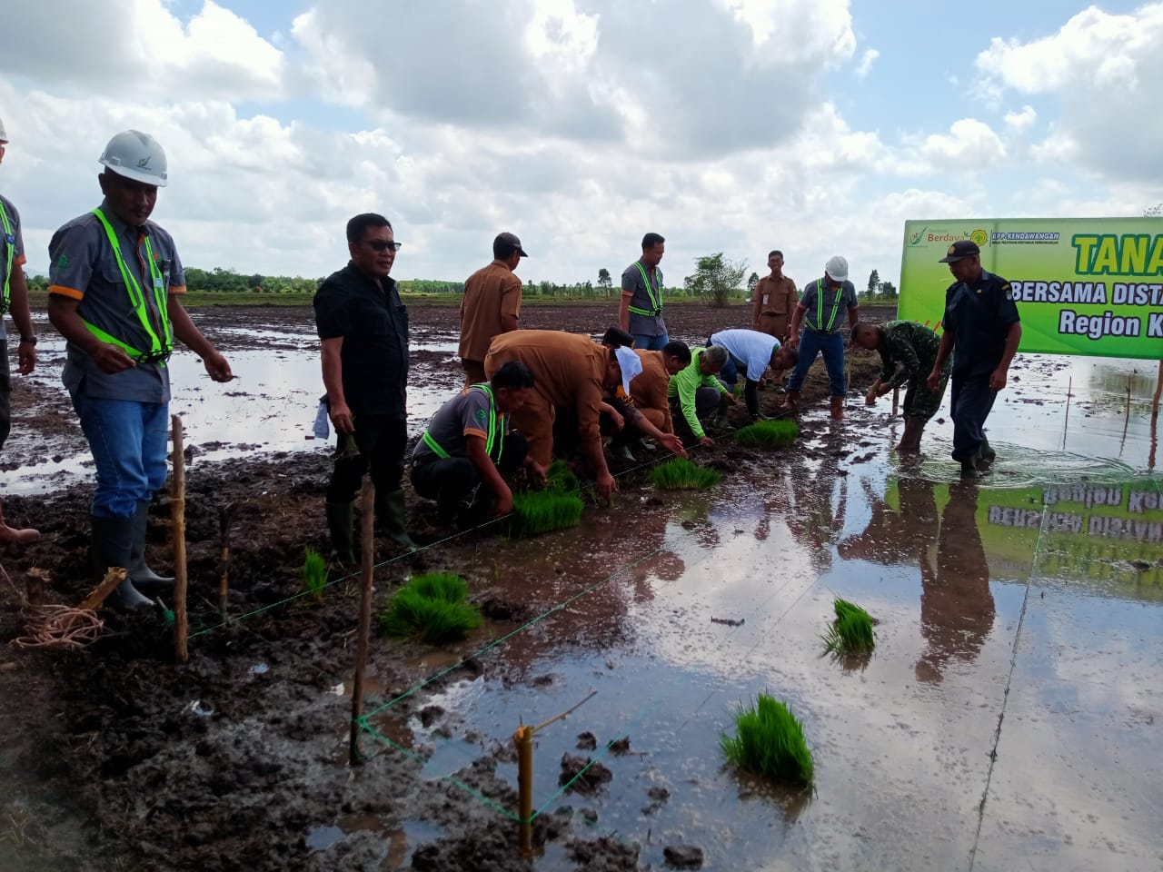 KENDAWANGAN (KALBAR) KOMPAS86.COM__, Diawali dengan menyanyikan lagu Kebangsaan Indonesia Raya dan Mars BGA, kegiatan menanam padi bersama Dinas Peternakan, Pertanian dan Perkebunan (Distanakbun) Kabupaten Ketapang Provinsi Kalimantan Barat berlangsung sukses. Kegiatan ini adalah merupakan program unggulan CSR PT. BGA Berdaya Ekonomi yang bekerjasama dengan BPP Kecamatan Kendawangan.