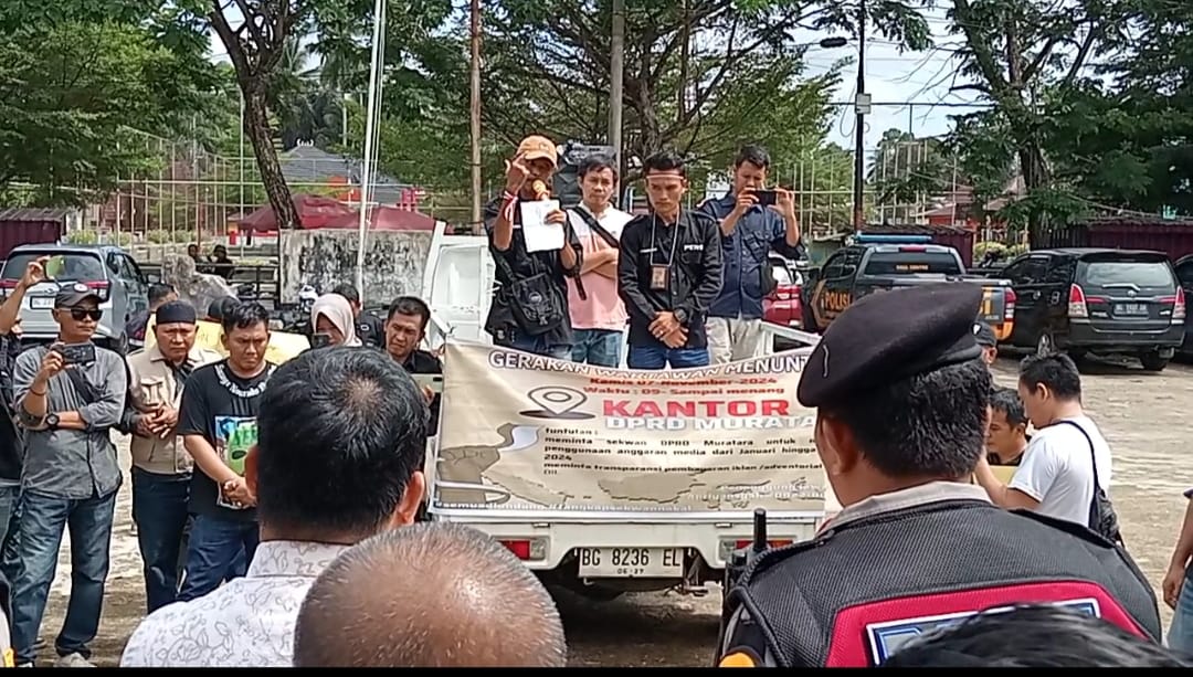 Aksi damai ini berlangsung tertib, dengan harapan agar aspirasi para jurnalis terkait transparansi anggaran dapat didengar dan ditindaklanjuti oleh pihak DPRD Muratara. Para jurnalis menginginkan kejelasan mengenai anggaran media, serta mengharapkan langkah konkret untuk mencegah terjadinya ketidakmerataan anggaran di masa depan.(***)