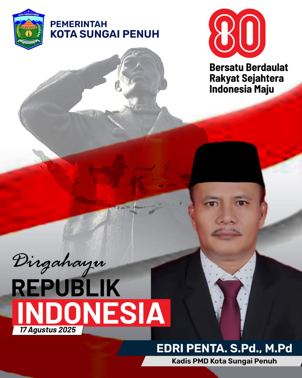 Dinas PMD Kota Sungai Penuh: 80 Tahun Merdeka, Saatnya Kita Bangkit dan Bersatu Membawa Indonesia Maju Author KrcAgustus 15, 2025 Dirgahayu Republik Indonesia ke-80! Mari terus kobarkan semangat juang para pahlawan dalam diri kita. Jadilah generasi yang tak hanya mengenang kemerdekaan, tapi juga menjaga dan mengisinya dengan karya dan prestasi. Pos terkaitDentum Semangat Ksatria Muda Guncang Bungo, Kejuaraan Karate Dandim Cup ke-3 Tahun 2025 Resmi DibukaDinas Pendidikan Tapsel di Duga Tak “becus” Kelola Dana RGBN, Anggaran Plang Informasi di MARK UP, Bongkaran Sekolah Dikabarkan RaibKapolres Bungo Tinjau Perbaikan Jembatan Menuju Pesantren di Timbolasi *Ba’abul MuarifHubungi kami di Pemkab Cirebon Dorong Desa Mandiri Kelola Sampah Lewat FGD Kampung BersihKejari Deli Serdang dan Kacab Kejari Pancur Batu, Diminta Masyarakat Periksa Proyek Di SMPN I NamorambeTunjukkan Taringnya, Pidsus Kejari Tanjung Perak Geledah PT Pelindo Sub Reg 3 Atas Dugaan Tipikor Pemeliharaan Kolam Pelabuhan