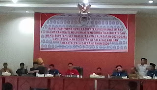 Paripurna dengan agenda pengumuman pemberhentian Bupati dan Wakil Bupati Muratara, masa jabatan 2021 – 2025 hasil Pemilihan Kepala Daerah (Pilkada) serentak tahun 2020, dipimpin Ketua DPRD Muratara Devi Arianto.