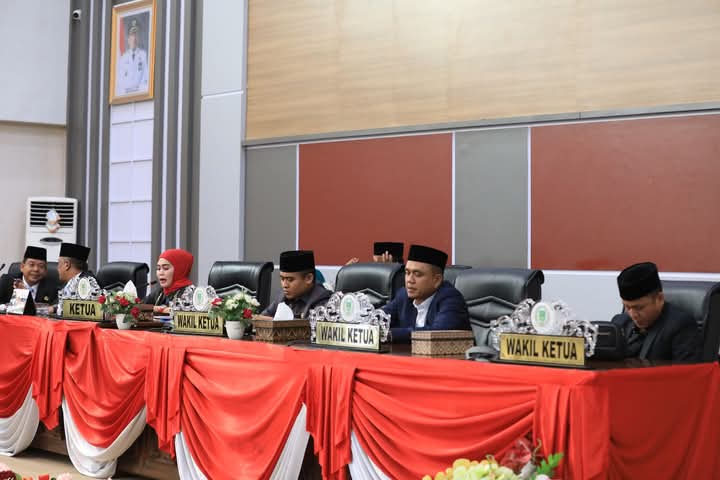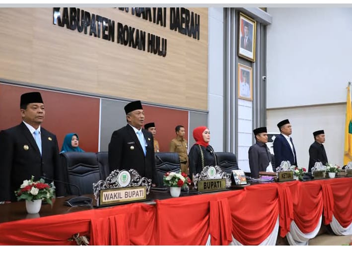 Sidang paripurna ini dipimpin langsung oleh Ketua DPRD Rohul, Hj. Sumiartini, didampingi oleh Wakil Ketua Nono Patria Pratama, SE, Wakil Ketua Porkot Lubis, SH, MH, dan Wakil Ketua M. Aidi, SH. Selain itu, hadir pula para anggota DPRD Rohul, Bupati dan Wakil Bupati Rohul periode 2025-2030, Anton ST, MM, dan Syafaruddin Poti, SH, MM.