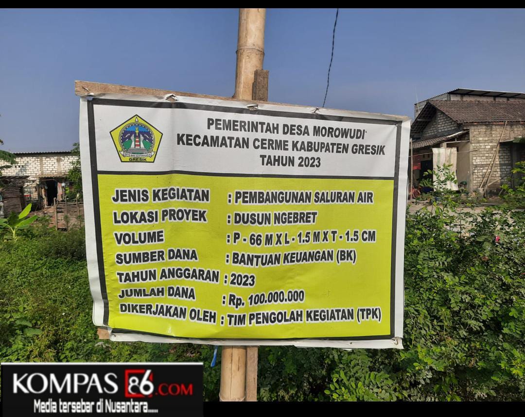 Pembangunan pengerjaan saluran air yang terletak di Dusun Ngebret Desa Morowudi Kecamatan Cerme Kabupaten Gresik Menjadi sumber pertanyaan Warga.