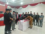 Dan persetujuan itu ditetapkan dengan penandatanganan persetujuan ditanda tangani Ketua DPRD Muratara, Efriansyah disaksikan oleh Wakil-wakil ketua, ketua-ketua fraksi dan ketua-ketua komisi dengan Bupati oMuratara, H Devi Suhartoni.