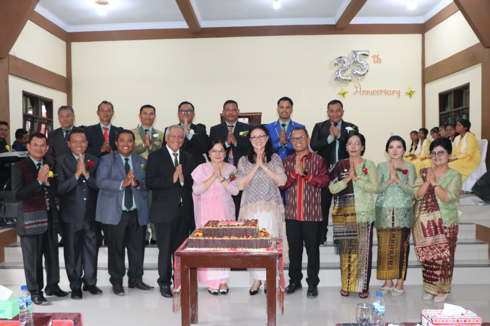 Bupati Toba, Poltak Sitorus bersama Ketua TP-PKK, Ny.Rita Marlina Poltak Sitorus bersama Sekretaris Daerah, Augus Sitorus dan Ketua DWP,Ny.Irma Augus Sitorus bersama sejumlah pimpinan OPD mengikuti ibadah Pesta Syukuran 25 tahun dan renovasi Gereja Pentakosta Indonesia Sidang Lumban Ginabean Balige, Minggu (24/03/2024).