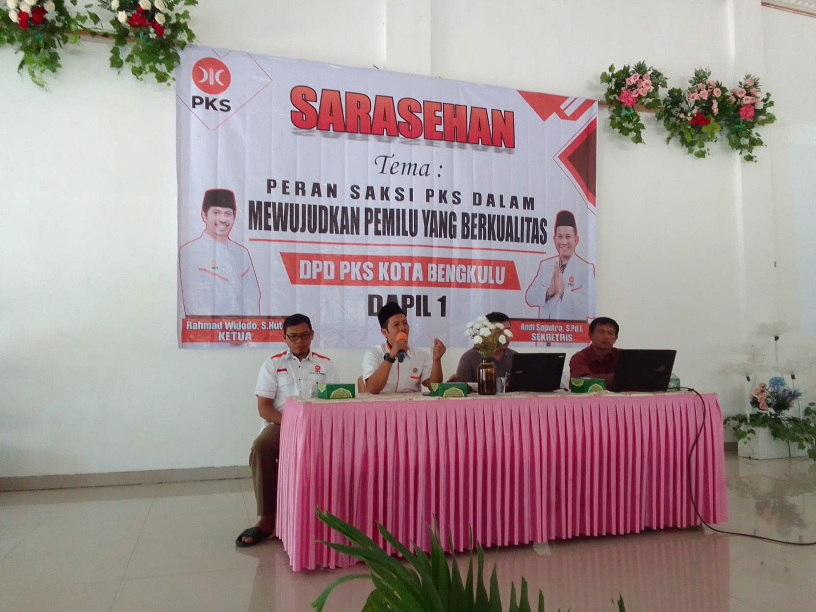 Ketua DPD PKS Kota Bengkulu Rahmat Widodo,S.Hut dengan didampingi Ketua DPC PKS Kecamatan Muara Bangkahulu Eliyan,SE pada Jurnalis Media Online Nasional kompas86.com mengatakan, guna lebih memaksimalkan dan mematangkan peran serta dan tugas pokok fungsi (tupoksi) saksi Partai Keadilan Sejahtera (PKS) maka diperlukan bekal berupa Bimtek yang wajib diikuti oleh kalangan saksi Partai Keadilan Sejahtera khususnya berada di Dapil 1 meliputi, Kecamatan Muara Bangkahulu, Kecamatan Sungai Serut dan Kecamatan Teluk Segara.