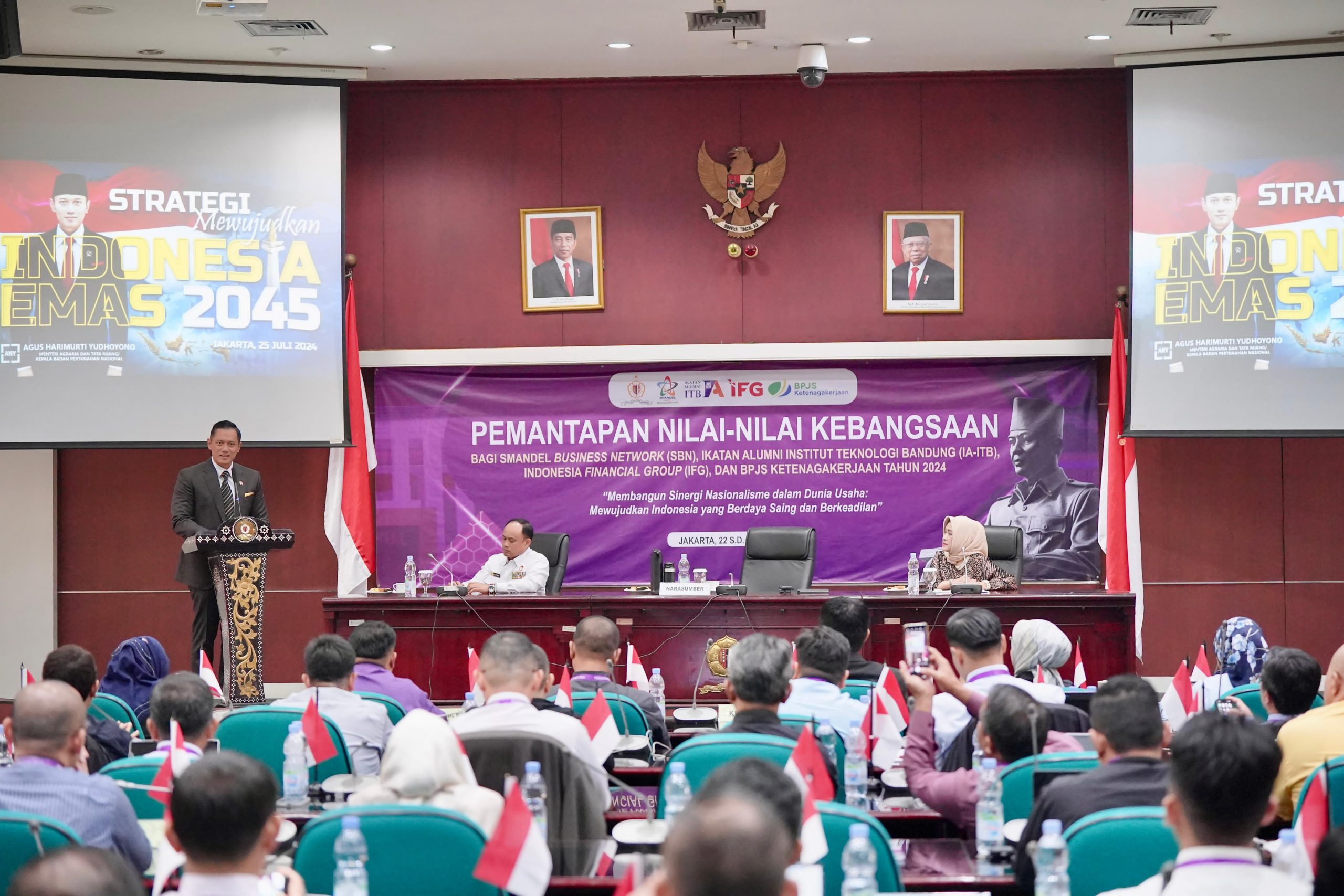 Jakarta,kompas86.com – Menteri Agraria dan Tata Ruang/Kepala Badan Pertanahan Nasional (ATR/BPN), Agus Harimurti Yudhoyono (AHY) menjadi narasumber dalam kegiatan Pemantapan Nilai-Nilai Kebangsaan di Gedung Lembaga Ketahanan Nasional (Lemhannas), Jakarta, Kamis (25/07/2024). Dalam kesempatan ini, ia menyampaikan bahwa Indonesia Emas 2045 dapat terwujud dengan menyatukan sumber daya alam dan sumber daya manusia.