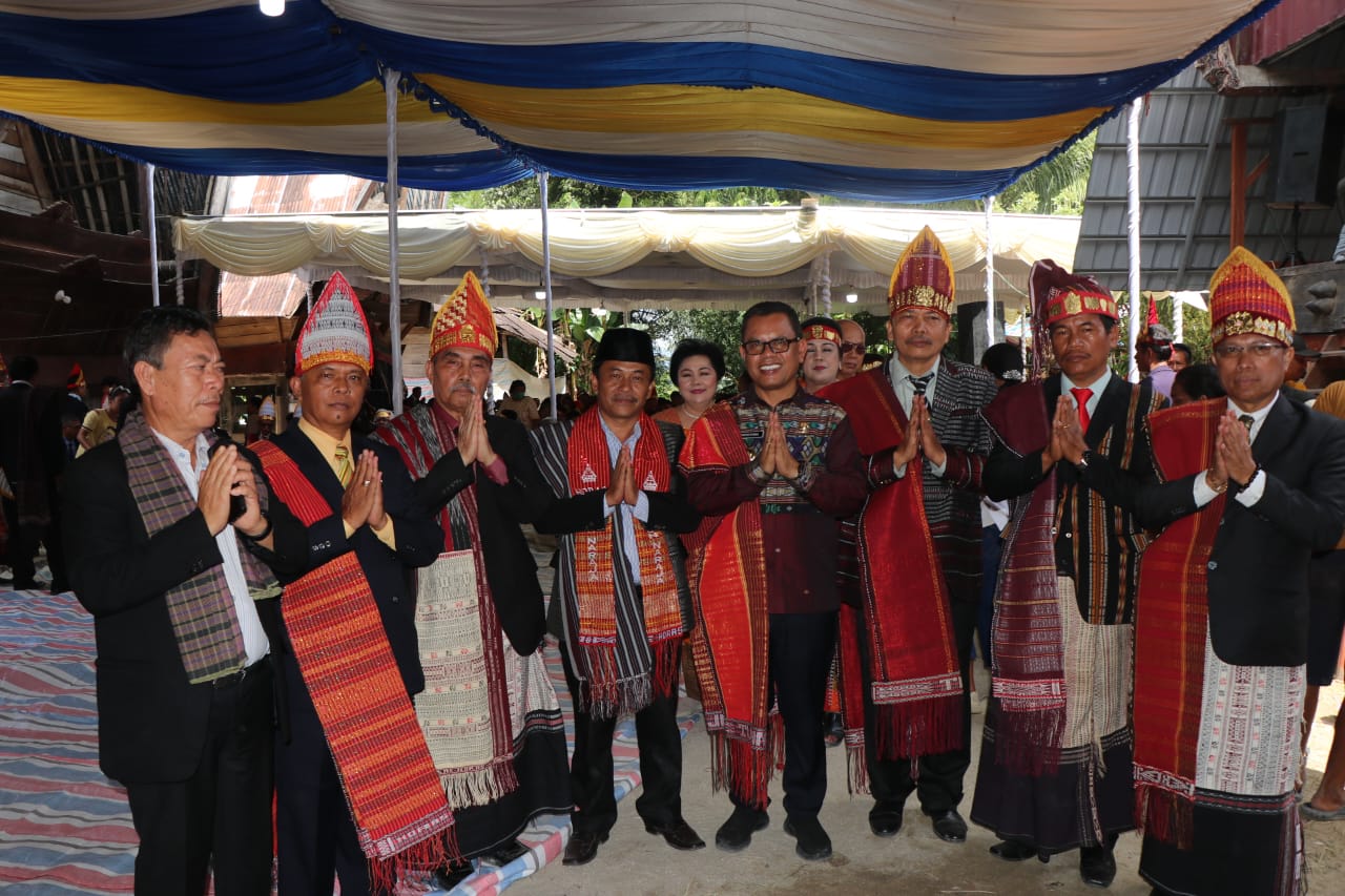 Bupati Toba Ir.Poltak Sitorus menghadiri undangan pesta peresmian Tugu Raja Dolok Saribu di Desa Sihiong, Kecamatan Bonatua Lunasi, Kabupaten Toba, Jumat (05/07/2024). Dihadapan keturunan Raja Dolok Saribu, Poltak Sitorus menyampaikan selamat atas peresmian Tugu Raja Dolok Saribu.