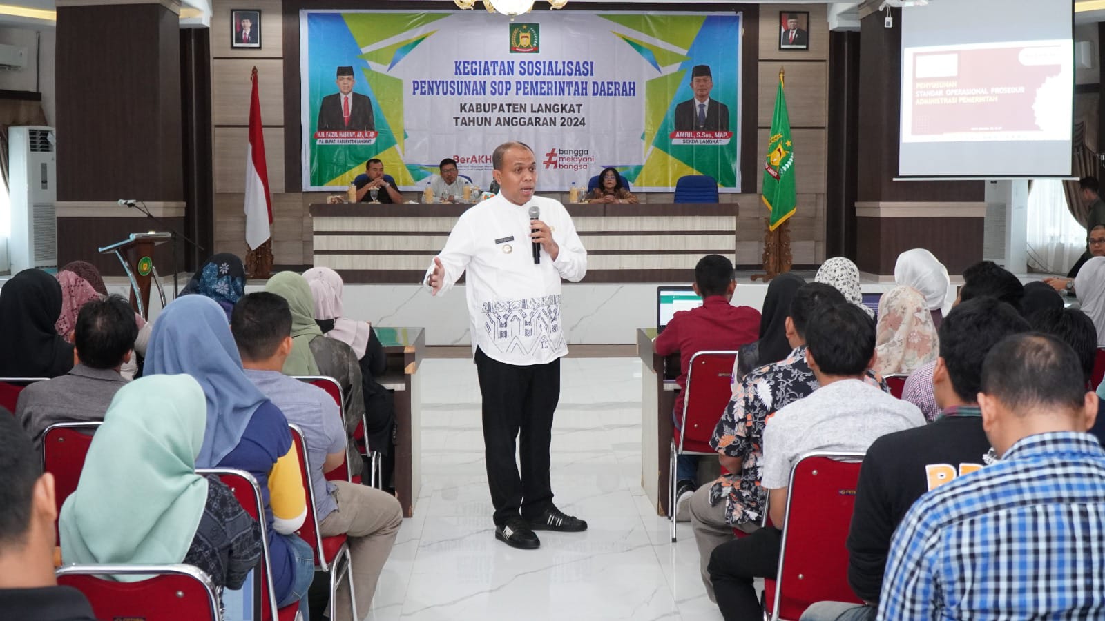 Pj. Bupati Langkat H. M. Faisal Hasrimy menghadiri Kegiatan Sosialisasi Penyusunan SOP Pemerintah Daerah Kabupaten Langkat TA 2024 bertempat di Ruang Pola Kantor Bupati Langkat (1/3/2024).