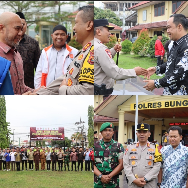 Kapolres Bungo AKBP Natalena Eko Cahyono, S.Kom selaku Pimpinan Apel mengatakan harapannya agar momen deklarasi ini memperkuat komitmen bersama dalam menciptakan Pilkada yang aman dan damai.