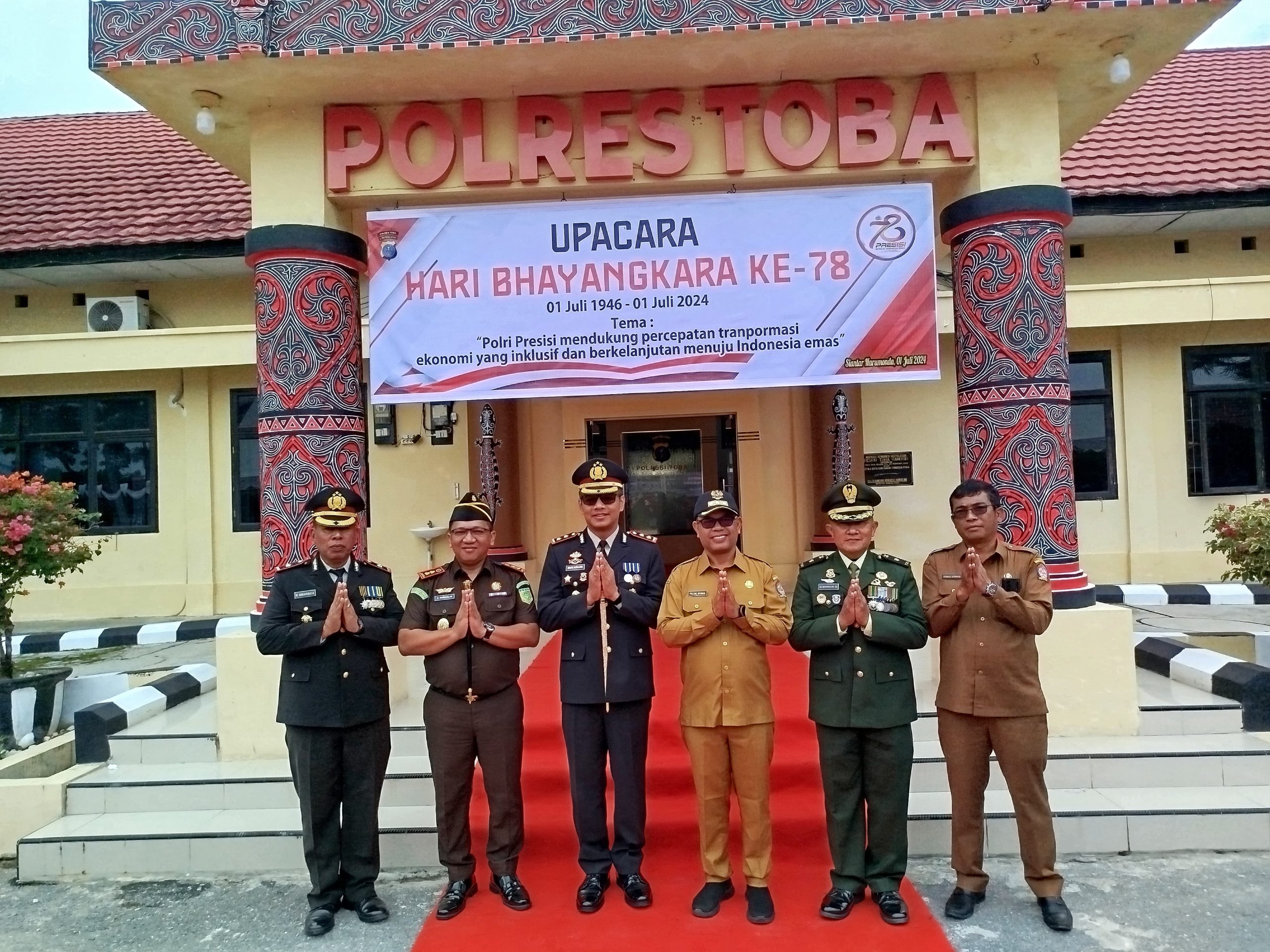 Kapolres Toba AKBP Wahyu Indrajaya selaku Inspektur Upacara dalam arahannya menyampaikan selamat memperingati Hari Bhayangkara ke-78 kepada seluruh anggota dan keluarga besar Polri di manapun berada.