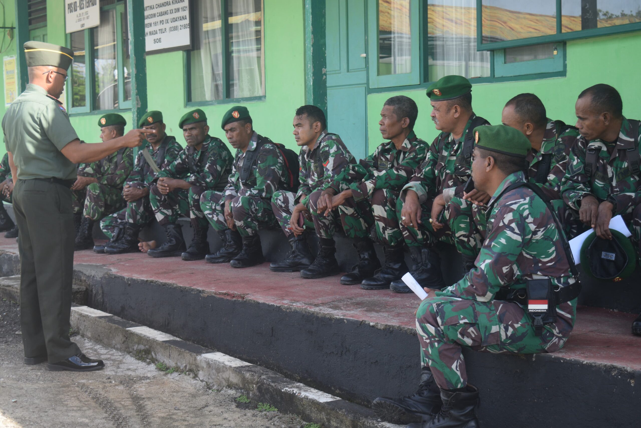Selesai Upacara rutin, Kapten Inf Gunawan mengumpulkan anggota di samping Aulah Makodim 1621/TTS untuk menyampaikan informasi dan pengecekan anggota serta untuk memberikan arahan dan penekanan kepada para anggota agar dalam pelaksanaan tugas yang dilaksanakan penuh rasa tanggung jawab.