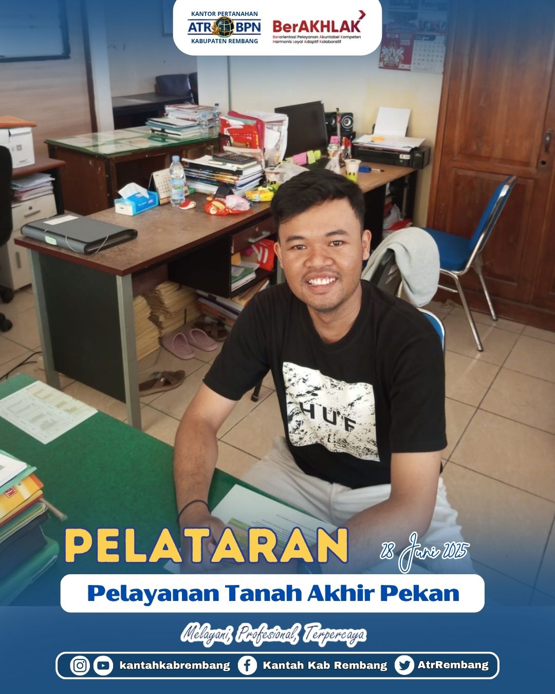 Rembang – Dalam upaya meningkatkan kualitas layanan kepada masyarakat, Kantor Pertanahan Kabupaten Rembang tetap membuka layanan pada hari Sabtu, 28 Juni 2025. Kegiatan ini merupakan bagian dari program inovatif bertajuk PELATARAN (Pelayanan Tanah Akhir Pekan), yang memungkinkan masyarakat mengurus berbagai layanan pertanahan tanpa harus mengganggu aktivitas hari kerja.
