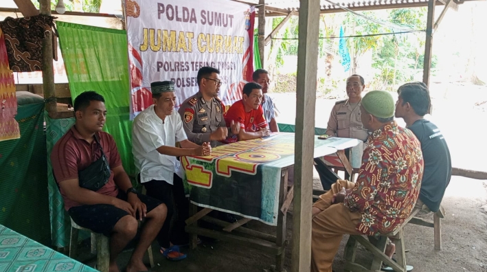 Dengan berinteraksi kepada masyarakat, Kapolsek Sipispis Polres Tebing Tinggi AKP Gunawan Effendi, S.H bersama personel Polsek Sipispis menampung aspirasi masyarakat saat Jumat Curhat di Warung Ibu Rasini Purba di Dusun 3 Desa Bartong Kecamatan Sipispis Kabupaten Serdang Bedagai, Sumatera Utara, Jumat (12/01/24).